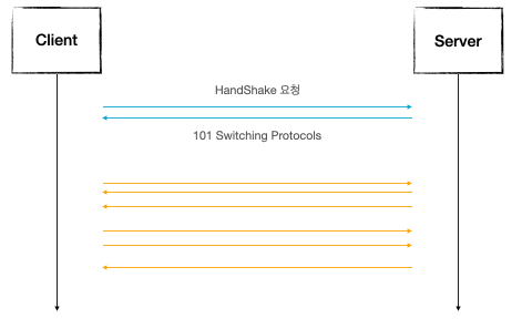 WebSocket 방식은 클라이언트와 서버가 HTTP 기반으로 HandShaking 한 후 ws프로토콜을 통해 상호 간 응답을 하는 방법이다.