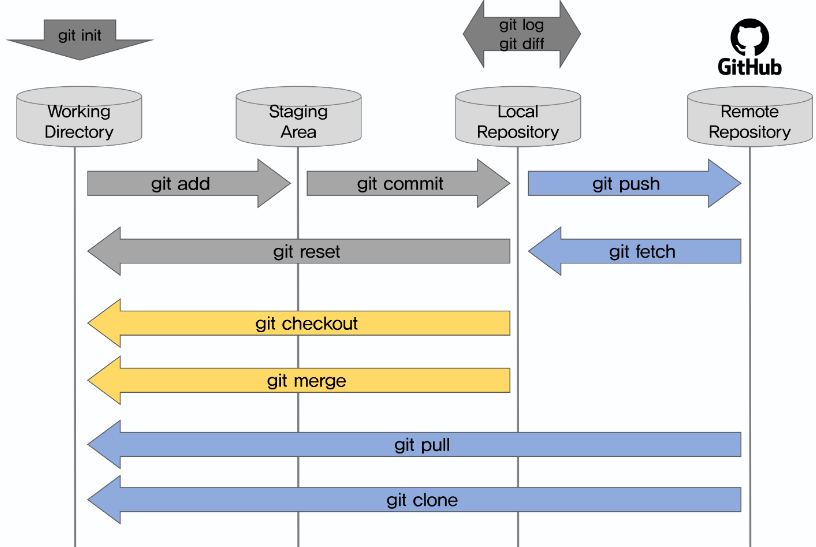 - 깃은 사용자가 명시적으로 git add 명령을 실행할 때까지 이 영역에서 발생하는 파일 변경 및 삭제 등의 상태 변화를 추적하지 않는다.