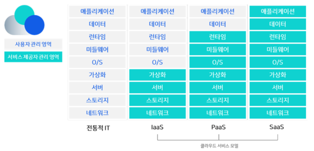 또한, 서비스의 제공 범위에 따라 Iaas(Infrastructure as a Service), PaaS (Platform as a Service), SaaS (Software as a Service)로 구분하기도 한다.
