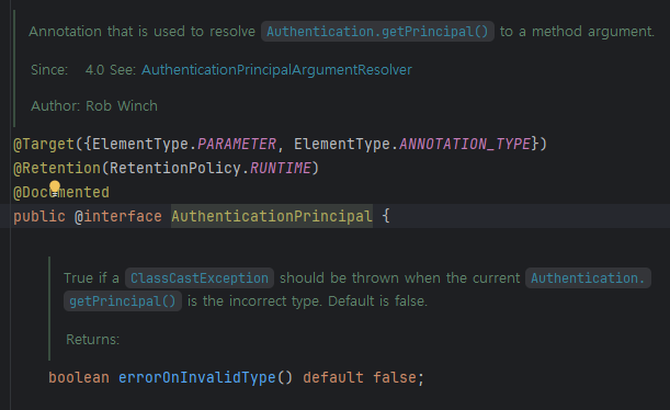 따라서 @AuthenticationPrincipal 어노테이션을 천천히 따라가 보았다.