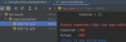 Spring Security Test 에서 403 오류는 csrf 때문에 발생한다고 한다.