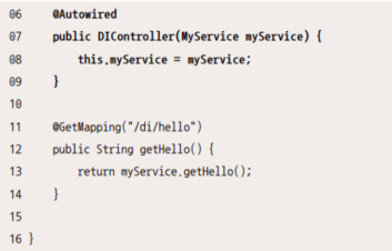 - @Autowired 어노테이션(annotation)을 통해 의존성 주입