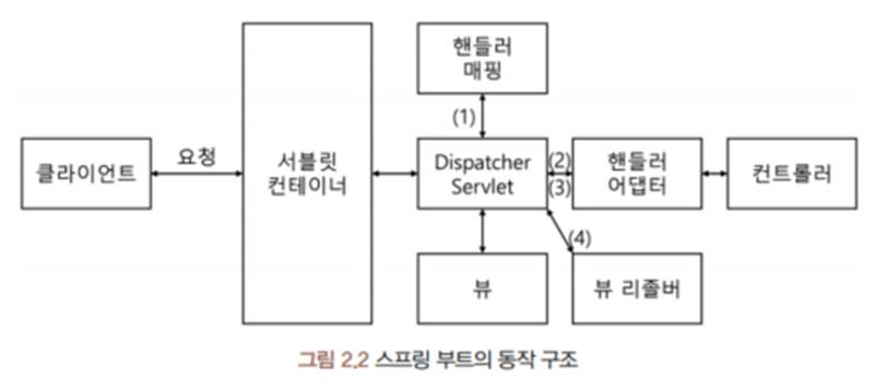 - (4) : 뷰 형식으로 리턴하는 컨트롤러를 사용할 때는 뷰 리졸버(View Resolver)를 통해 뷰(View)를 받아 리턴한다.
