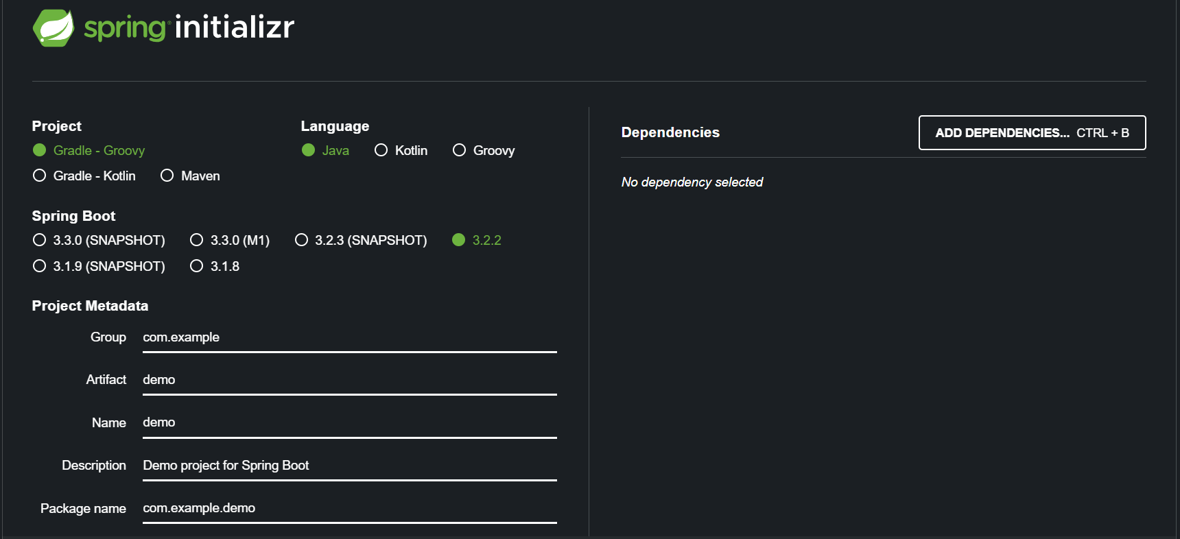 (2) 스프링 공식 사이트에서 프로젝트 생성하기