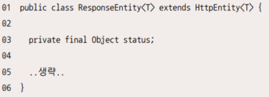 - ReqeustEntity와 ResponseEntity는 HttpEntity를 상속받아 구현한 클래스이다.